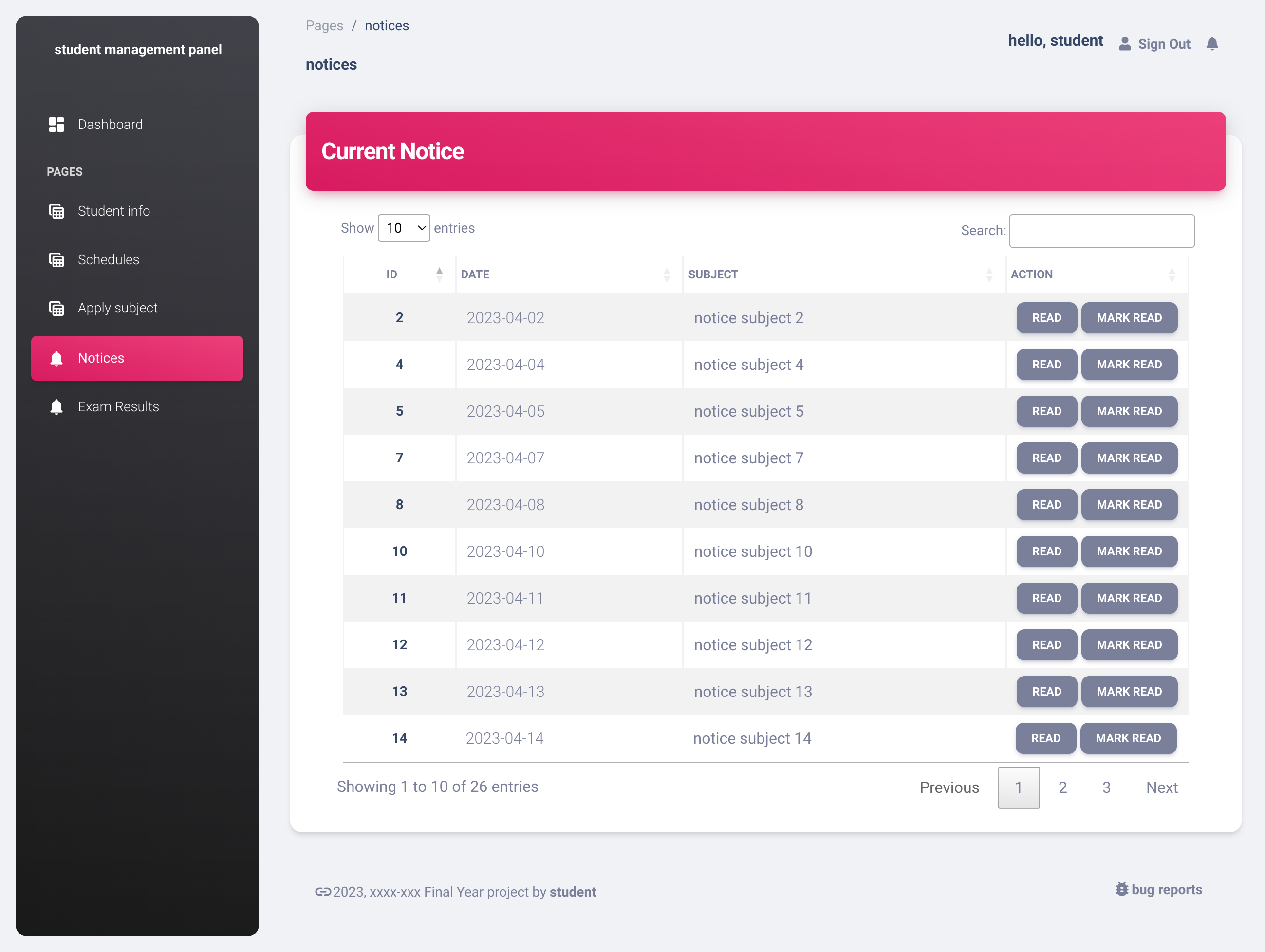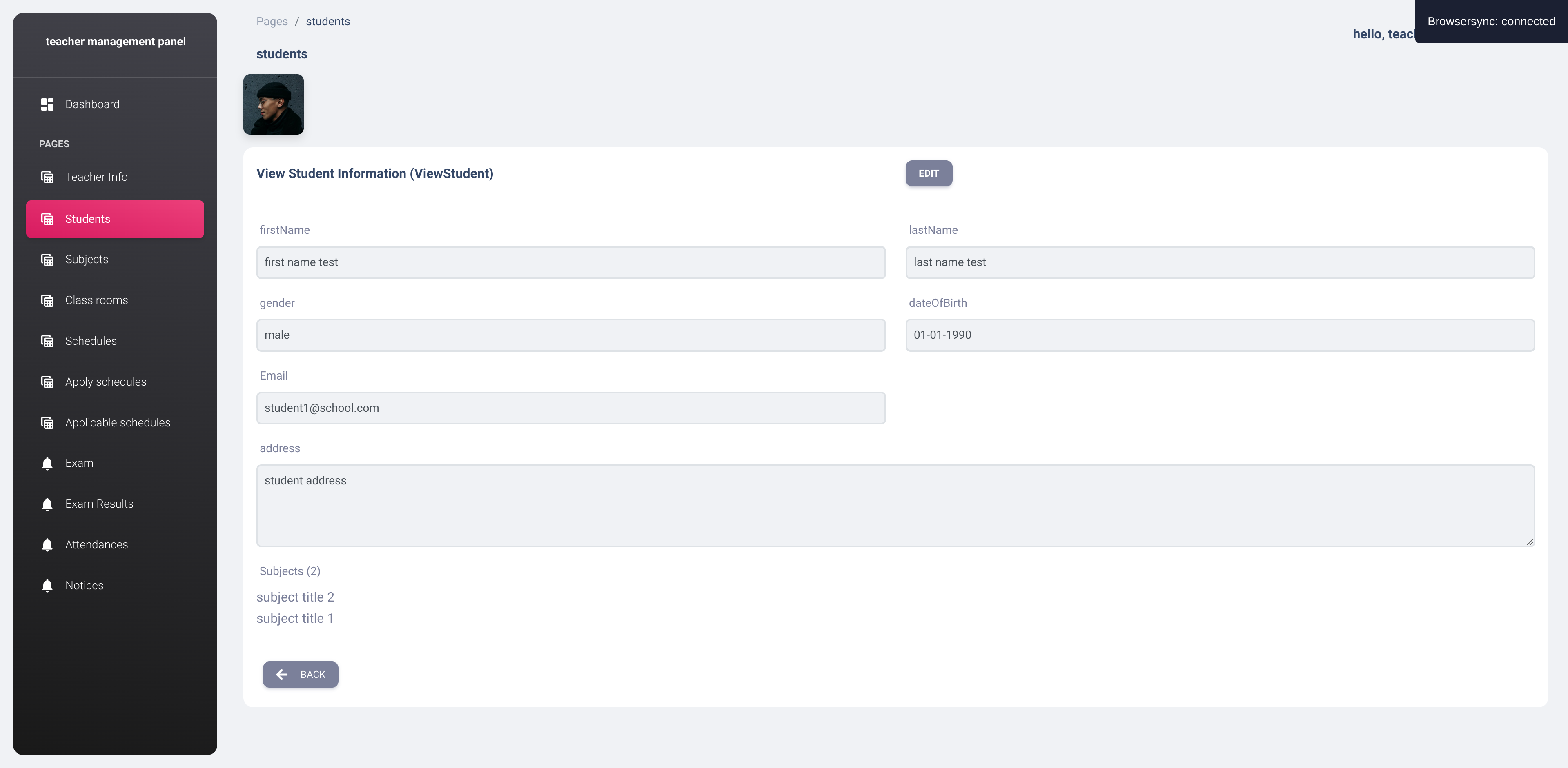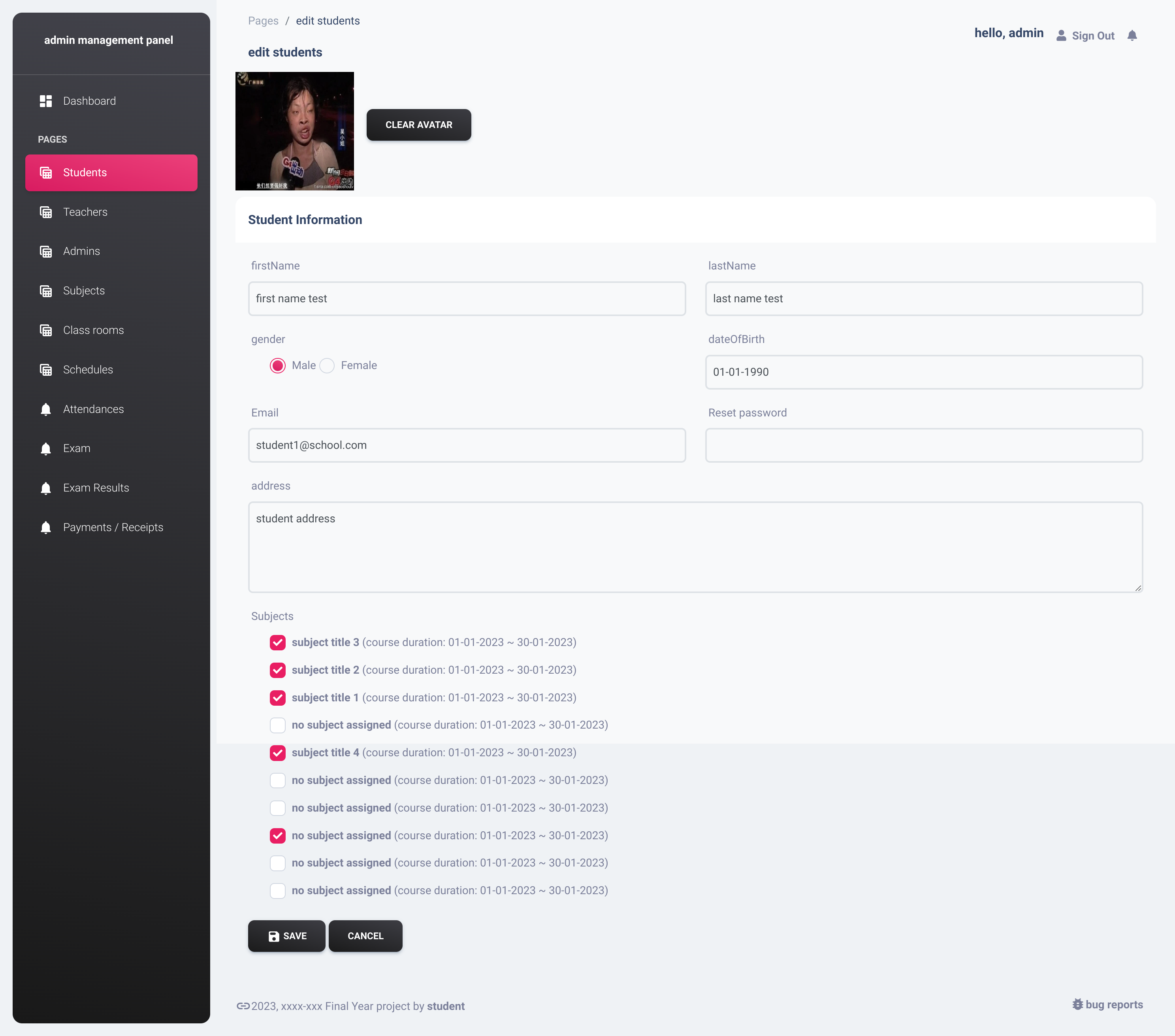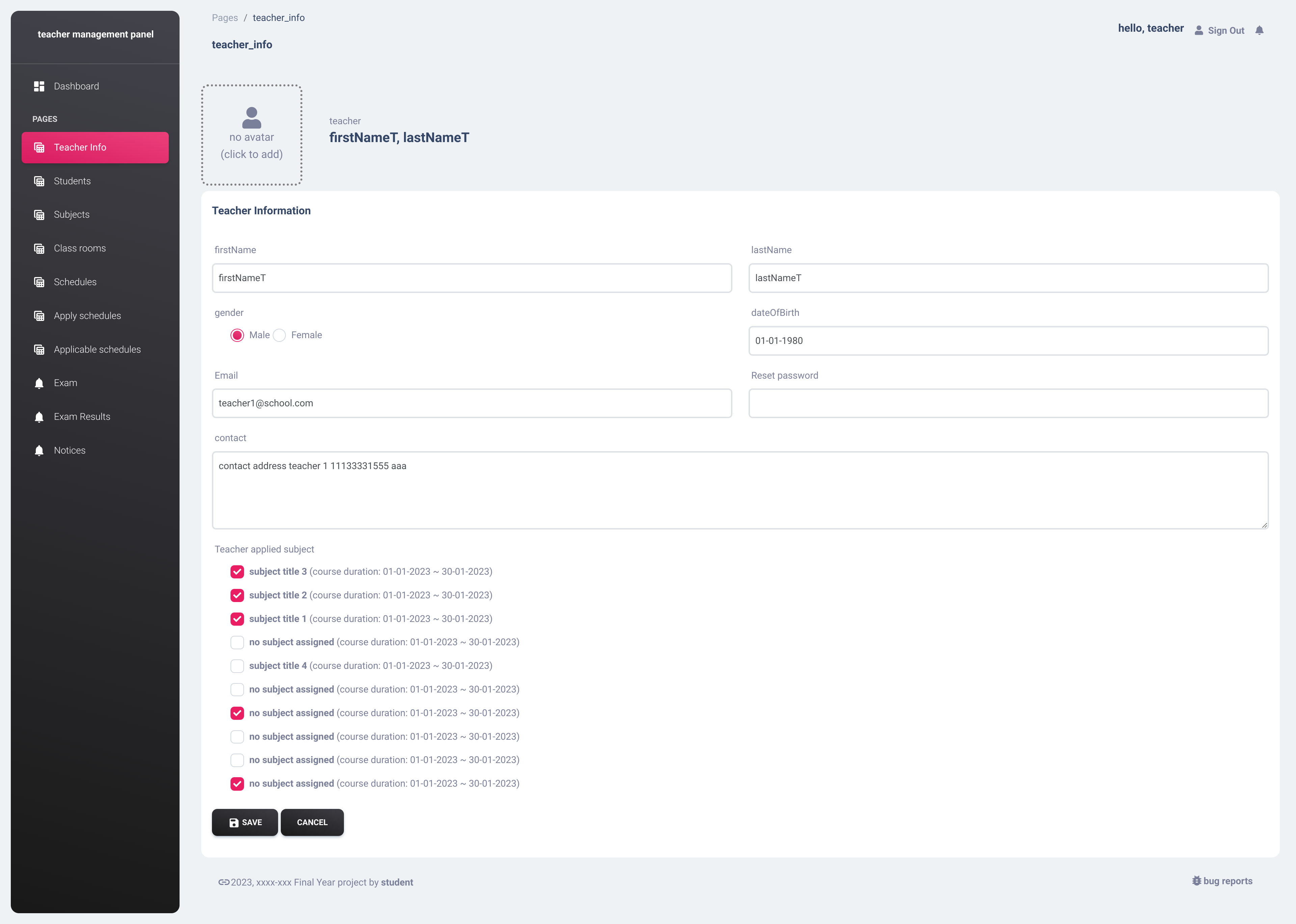 Update , Add Student (4 月 21)Update Teacher (4 月 21)Update Subject (4 月 21)Update Add, Delete Schedule (4 月 21)View class room (4 月 21)