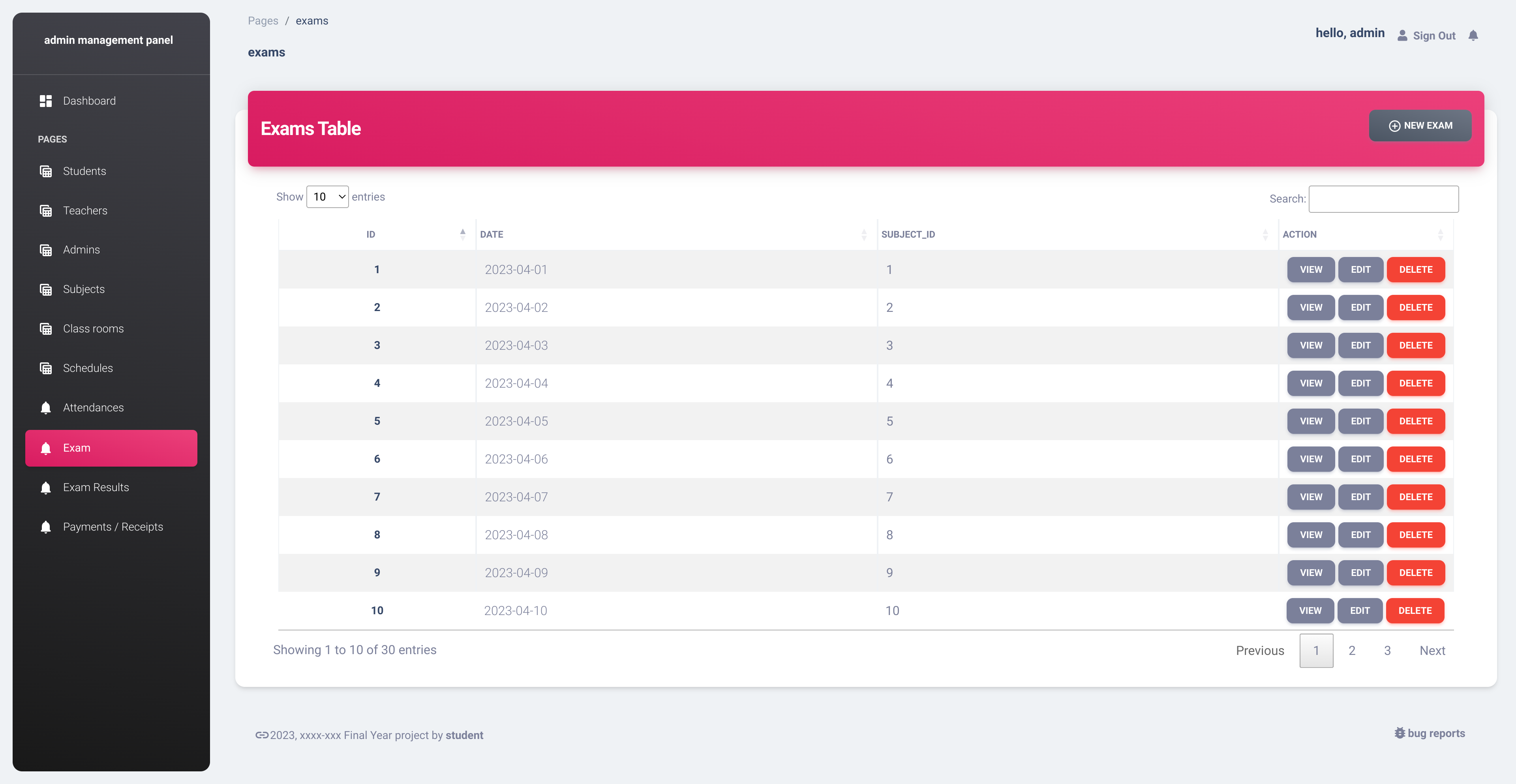 Update, Add, Delete Subject (4 月 21)Update, Add, Delete Schedule (4 月 21)Update, Add, Delete Class room (4 月 21)Update, Add, Delete Student (4 月 21)Update, Add, Delete Teacher (4 月 21)Update, Add, Delete User (4 月 21)