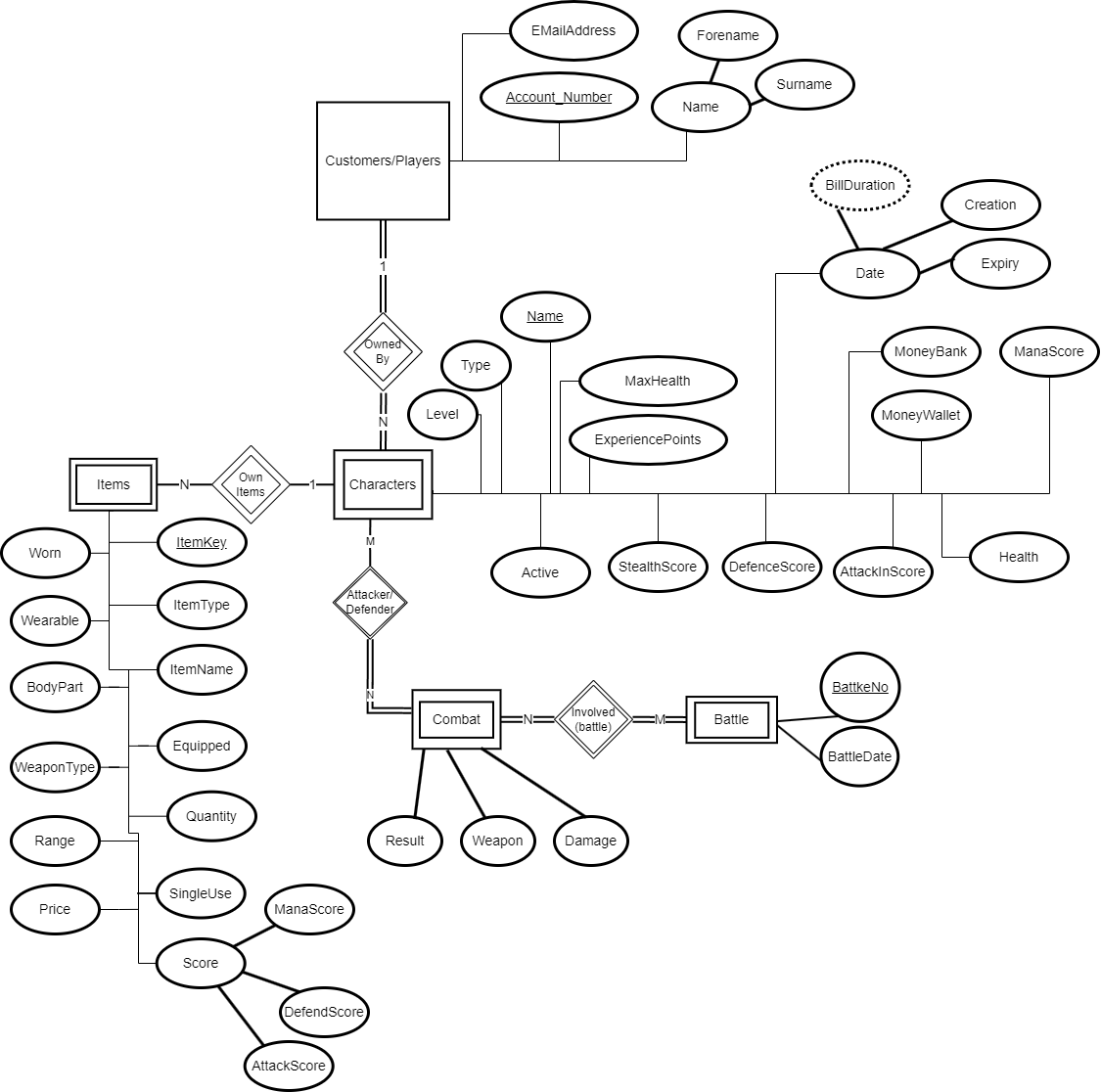 ER and attributes for customers/players