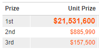 1st Prize | Pick all the 6 Drawn Numbers | Prize is determined by the total number of winning unit investments in the First Division Prize. The minimum First Division Prize Fund is set at HK$8 million |